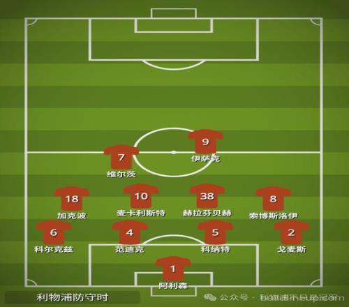 同时,两个边路的防守更加稳固,左中场加克波帮助左后卫科尔克兹、右中场索博斯洛伊帮助右后卫戈麦斯,利物浦两个边路的防守都不再显得那么脆弱。